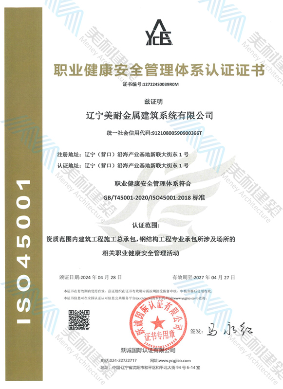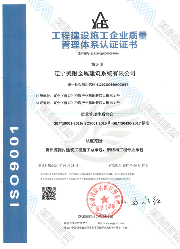 遼寧美耐金屬建筑系統(tǒng)有限公司位于遼寧(營口)沿海產(chǎn)業(yè)基地,專注于預制金屬建筑系統(tǒng)領(lǐng)域,是一家集工業(yè)建筑設計、制作、施工及相關(guān)的技術(shù)咨詢與服務為一體的綜合性服務企業(yè)。作為國家鋼結(jié)構(gòu)協(xié)會會員、中國建筑金屬結(jié)構(gòu)協(xié)會會員單位與國家高新技術(shù)企業(yè),美耐建筑集建筑工程施工總承包、鋼結(jié)構(gòu)工程專業(yè)承包等多種資質(zhì)于一身,并擁有22項鋼結(jié)構(gòu)建筑領(lǐng)域?qū)@?項軟件著作權(quán)。
